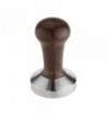 Mε ανοξείδωτη βάση  και λαβή ξύλινη χρώματος καφέ .